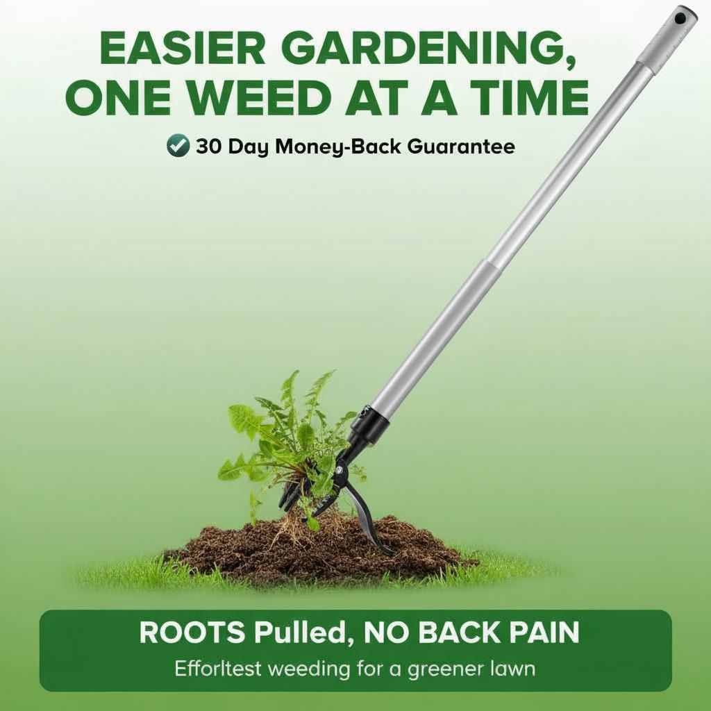 The claw head grips the weed firmly at the root, allowing you to pull it out completely without leaving regrowth behind.